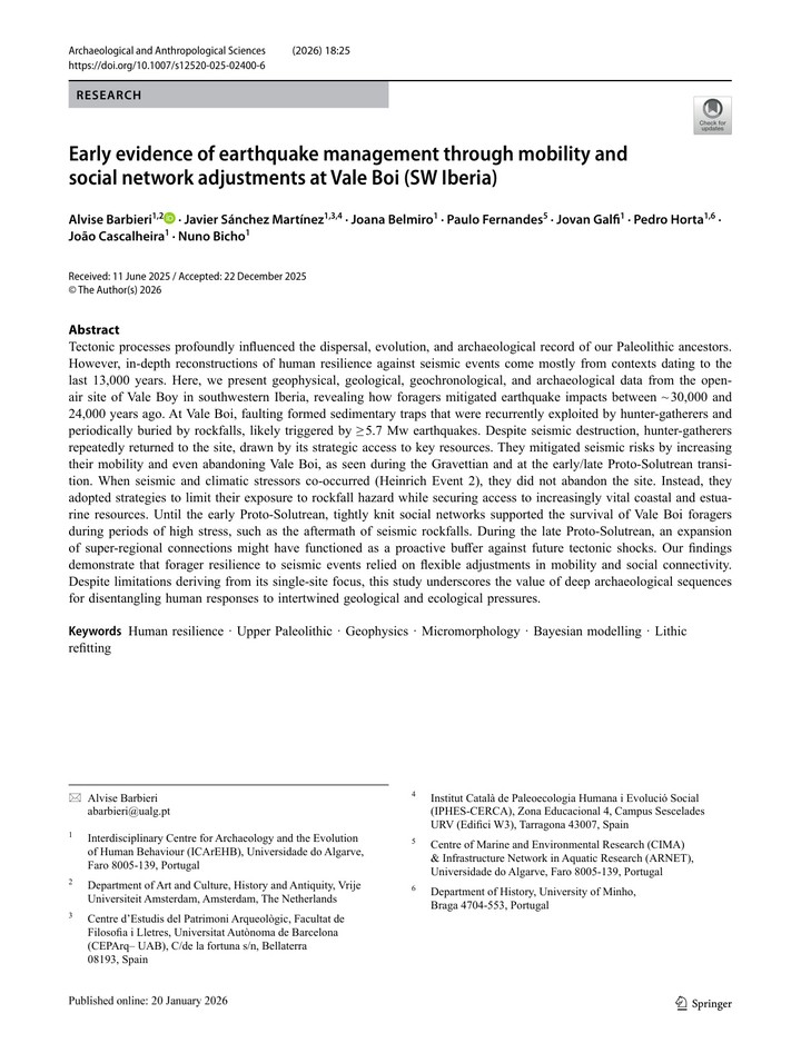 Tectonic processes profoundly influenced the dispersal, evolution, and archaeological record of our Paleolithic ancestors. However, in-depth reconstructions of human resilience against seismic events come mostly from contexts dating to the last 13,000 years. Here, we present geophysical, geological, geochronological, and archaeological data from the open-air site of Vale Boi in southwestern Iberia, revealing how foragers mitigated earthquake impacts between ~30,000 and 24,000 years ago. At Vale Boi, faulting formed sedimentary traps that were recurrently exploited by hunter-gatherers and periodically buried by rockfalls, likely triggered by ≥5.7 Mw earthquakes. Despite seismic destruction, hunter-gatherers repeatedly returned to the site, drawn by its strategic access to key resources. They mitigated seismic risks by increasing their mobility and even abandoning Vale Boi, as seen during the Gravettian and at the early/late Proto-Solutrean transition. When seismic and climatic stressors co-occurred (Heinrich Event 2), they did not abandon the site. Instead, they adopted strategies to limit their exposure to rockfall hazard while securing access to increasingly vital coastal and estuarine resources. Until the early Proto-Solutrean, tightly knit social networks supported the survival of Vale Boi foragers during periods of high stress, such as the aftermath of seismic rockfalls. During the late Proto-Solutrean, an expansion of super-regional connections might have functioned as a proactive buffer against future tectonic shocks. Our findings demonstrate that forager resilience to seismic events relied on flexible adjustments in mobility and social connectivity. Despite limitations deriving from its single-site focus, this study underscores the value of deep archaeological sequences for disentangling human responses to intertwined geological and ecological pressures.